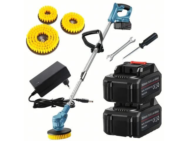 Akumulátorový rotační čisticí kartáč značky REAL GARDEN s výkonným motorem až 7000 ot./min. a sadou 2 baterií poskytuje provoz bez zbytečných kabelů. Teleskopická trubice a ergonomická rukojeť zajišťují pohodlné čištění podlah, dlaždic i venkovních ploch.