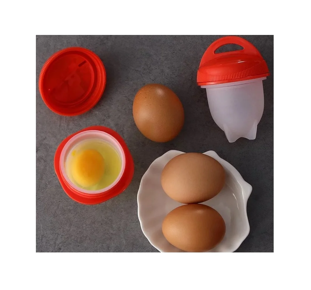 plastové pohárky na vaření vajec jsou ideálním řešením pro ty, kteří nemají rádi loupání vařených vajec a chtějí ušetřit čas. Stačí otevřít nádobku, rozklepnout vejce dovnitř, zavřít a vařit. Také můžete do vajíčka přidat vlastní ingredience a vytvořit tak pokrmy, které by při běžném vaření vajec vzniknout nemohly. Před použitím je nutné vymazat pohárky tukem. Tento praktický nástroj Vám usnadní přípravu vajec a umožní Vám experimentovat s různými recepty.