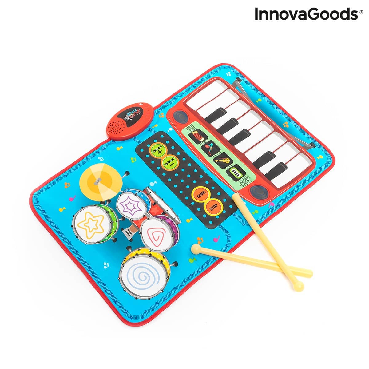 Interaktivní hudební podložka, díky které se malý muzikant seznámí až se 4 nástroji! Klavír, housle, akordeon, saxofon nebo bicí, záleží jen na výběru. Podložka je protiskluzová, má tlačítko na zapnutí a vypnutí a na regulaci hlasitosti, a můžete ji umístit na jakýkoliv povrch. Pokud se stane, že vám dojde fantazie, nemusíte zoufat, v podložce totiž najdete několik uložených předehraných melodií.