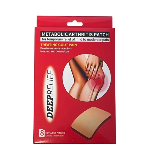 Jedná se o měkkou, flexibilní, bolesti ulevující náplast, která poskytuje silnou, pronikavou úlevu při metabolické artritidě. Vysoce prodyšná, ventilační netkaná textilie je navržena tak, aby uživateli nabízela optimální pohodlí. Ochranný film proti vytažení a odlupování usnadňuje aplikaci a bezbolestné odstranění náplasti. Léčivé složky se z náplasti rychle vstřebávají do pokožky, stimulují krevní oběh a poskytují dlouhotrvající úlevu potřebným partiím těla.