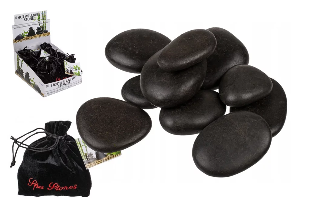 Lávové kameny pro domácí masáže. Kameny stačí nahřát v horké vodě a poté, za pomocí oleje, již můžete své partnerce – partnerovi dopřát skvělou masáž. Lávové kameny v sobě udržují teplo déle než jiné kameny a teplo příjemně uvolňuje svaly a odstraňuje napětí. Dopřejte si skvělou relaxační Hot Stones masáž s touto naší sadou lázeňských lávových kamenů.