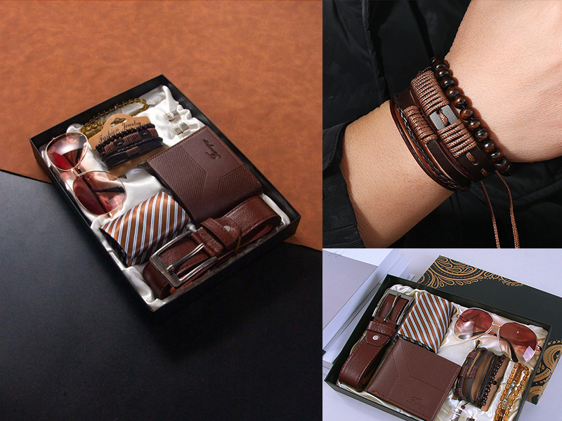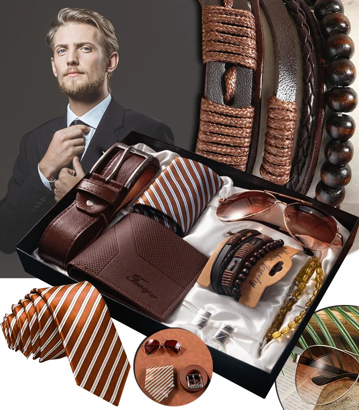 Dárková sada Fancy potěší každého muže, který má rád eleganci a smysl pro detail. Obsahuje pečlivě sladěné doplňky: koženou peněženku, opasek, kravatu, náramky, sluneční brýle a manžetové knoflíčky. Vše zabalené v reprezentativní krabičce, která podtrhuje výjimečnost celého setu. Ideální jako dárek k narozeninám, výročí nebo svátku, když chcete darovat praktický a zároveň vkusný komplet.