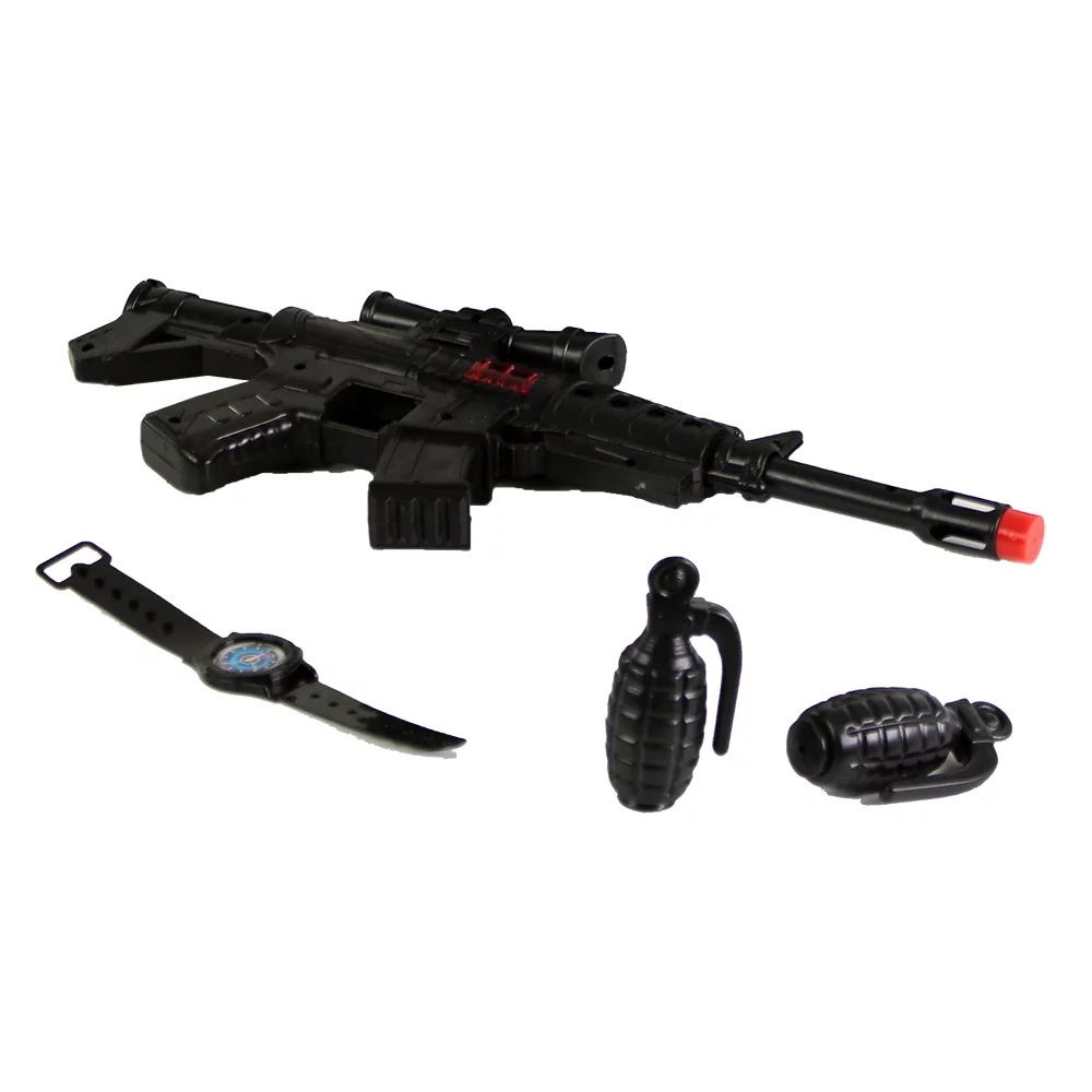 Tato policejní vesta pro děti je kreativní způsob, jak dítě obléknout na maškarní či mu prostě dopřát sen stát se policistou! Tento profi set obsahuje samopal, ochrannou vestu, 2 granáty, vysílačku, odznak, brýle a helmu. Vše je vyrobeno z plastu.