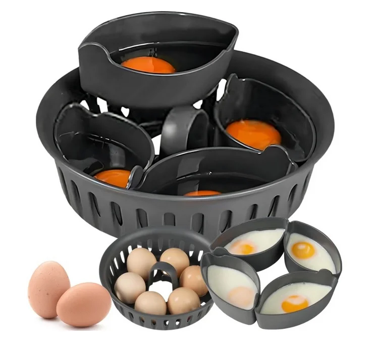 Chcete mít dokonale uvařená vejce bez popraskaných skořápek? Praktická vložka na vaření vajec zvládne až 6 kusů najednou, postará se o jejich stabilitu během vaření a usnadní manipulaci. Díky univerzálnímu tvaru pasuje do většiny kuchyňských robotů a využijete ji nejen na vejce, ale i na zeleninu nebo knedlíky v páře.
