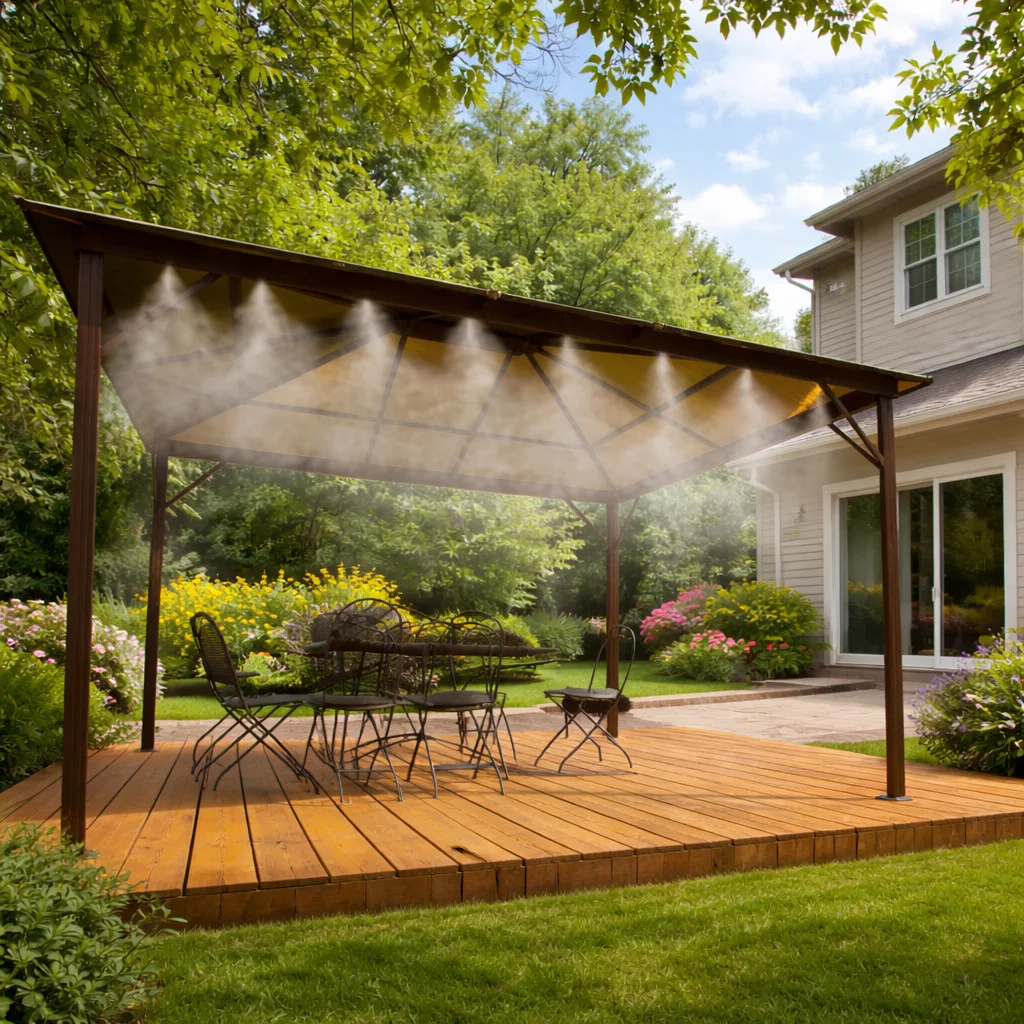 S tímto systémem si můžete v létě během horkých dní dopřát osvěžující vodní mlhu, kdykoliv budete chtít. Kromě osvěžení lidí se dá hadice s nástavci využít i pro zavlažování rostlin.
