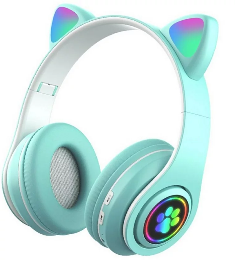 Zaparkorun Bezdrátová LED sluchátka Cat Ears – Tyrkysová