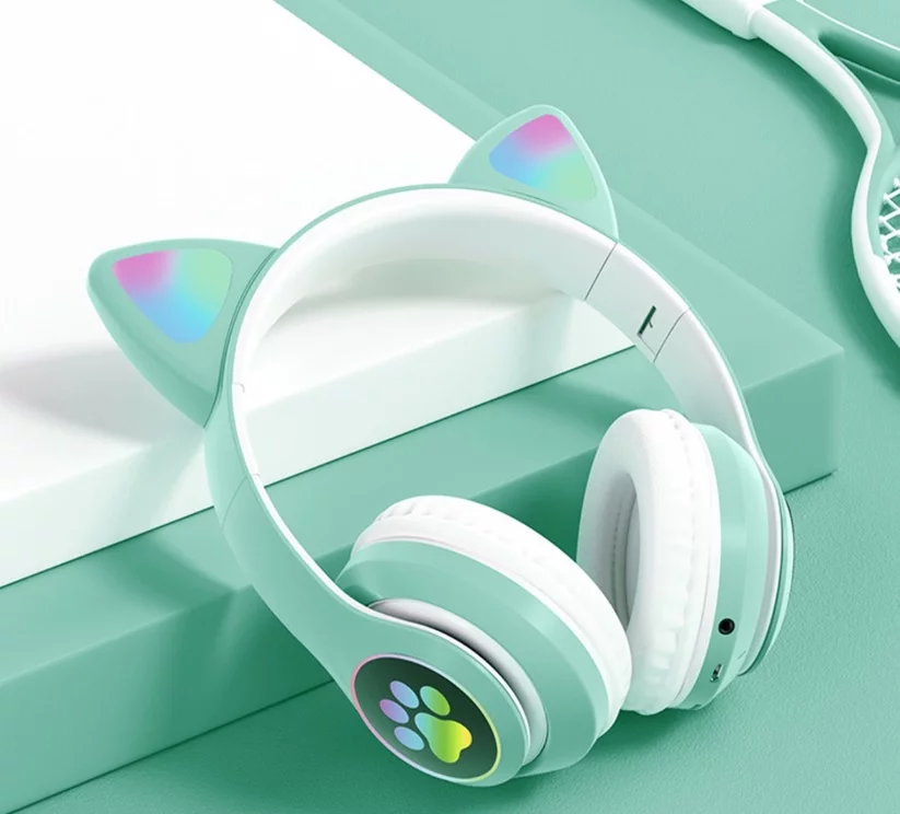 Pohodlná bezdrátová sluchátka pro děti. kočičí uši s LED osvětlením umožní vašemu dítěti vyniknout. Použití vysokorychlostního modulu Bluetooth 5.0 umožňuje pohodlné používání zařízení až do dosahu 10 metrů. Napájení je zajištěno z vestavěné baterie.