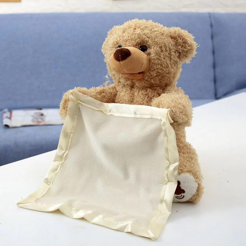 Tohoto rozkošného méďu si oblíbí všechny děti! Nejedná se totiž o jen tak ledajakého plyšáka. Medvídek na děti mluví a zároveň se schovává za dečku. Takovou hru na schovávanou jste ještě nezažili! Navíc má medvídek vždycky radost, když vás najde. Mluví v anglickém jazyce, v překladu povídá například: „Kdepak jsi? Vidím tě!“