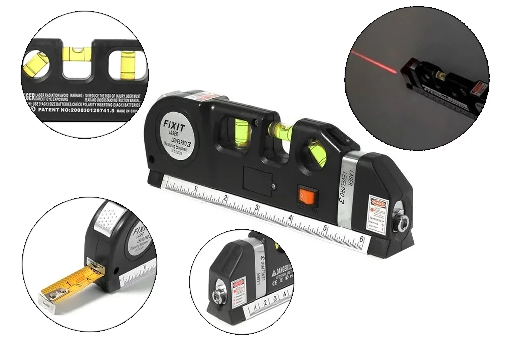 univerzální multifunkční nástroj pro každého kutila. Obsahuje svinovací metr, pravítko, vodováhu a laserové vyrovnávání.