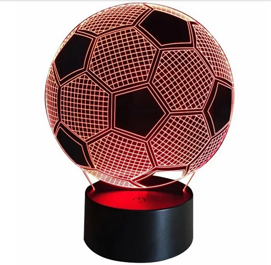 Tato stylová LED noční lampa ve tvaru fotbalového míče se bude líbit malým i velkým fanouškům fotbalu. míč je vytištěný na akrylové desce, která je podsvícena LED diodami s proměnlivou barvou. Jedná se o ideální relaxační osvětlení nejen do dětského pokoje.