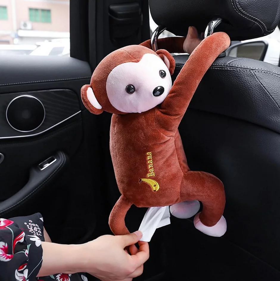 Veselá plyšová opička, která slouží jako obal na papírové kapesníky či vlhčené ubrousky. Opičku lze zavěsit na libovolné místo, například doma či v autě a Vaše děti si z ní mohou pohodlně tahat ubrousky či kapesníky. Délka opičky je 52 cm.