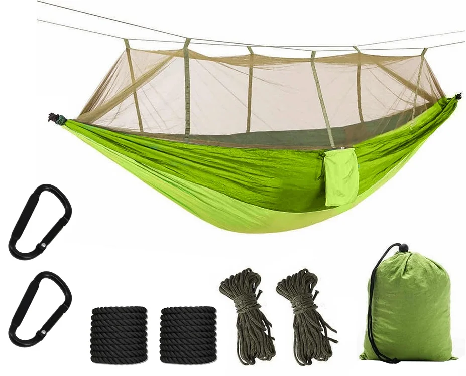 Zaparkorun Outdoorová hamaka – houpací síť se síťkou proti hmyzu – olivová